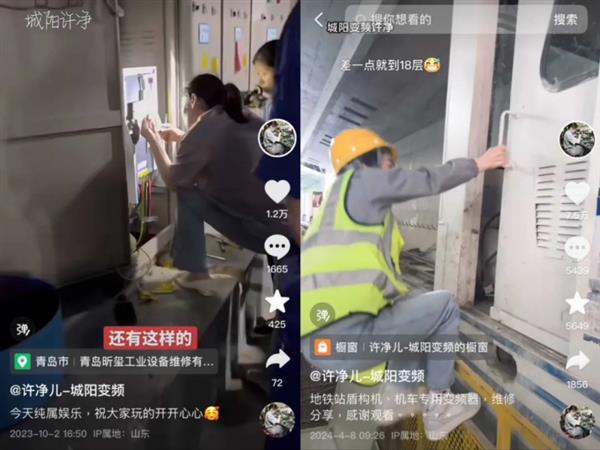 在她的抖音賬號@許淨兒-城陽變頻,她穿(chuān)著灰撲撲的工裝,更(gèng)新著自己維修變頻器的日常。